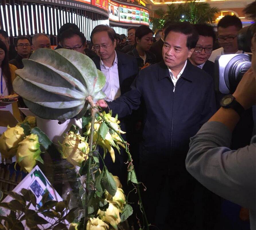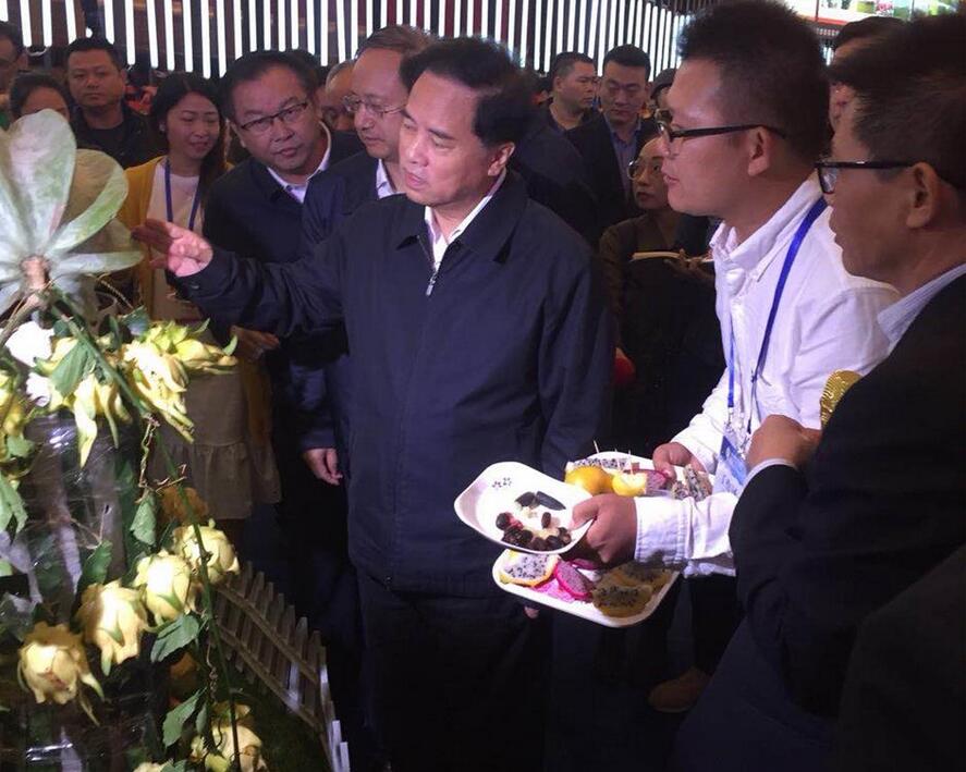 展會(huì)現(xiàn)場(chǎng)省委劉賜貴書(shū)記重點了(le)解了(le)厄瓜多(duō)爾燕窩果、盛大(dà)巨無霸黃(huá>ng)龍、澳洲手指檸檬、非洲楊桃南(nán)瓜等新品種開(kāi)發情況,盛大(dà)農(nóng)業(yè)公司王俏總經理(lǐ)進行(xíng)了(le)重點介紹和(hé)彙報(bào),受到(dào↔)劉書(shū)記等省領導的(de)肯定,我們深受鼓舞(wǔ)。