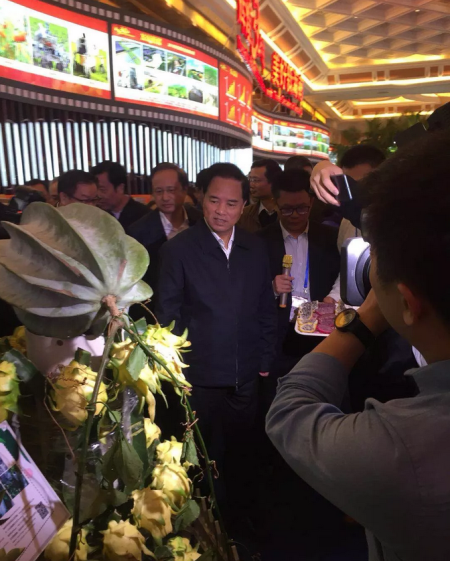 展會(huì)現(xiàn)場(chǎng)省委劉賜貴書(shū)記重點了(le)解了(le)厄瓜多(duō)爾燕窩果、盛大(dà)巨無霸黃(huá>ng)龍、澳洲手指檸檬、非洲楊桃南(nán)瓜等新品種開(kāi)發情況,盛大(dà)農(nóng)業(yè)公司王俏總經理(lǐ)進行(xíng)了(le)重點介紹和(hé)彙報(bào),受到(dào↔)劉書(shū)記等省領導的(de)肯定,我們深受鼓舞(wǔ)。